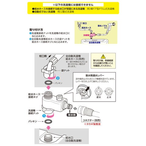 蛇口への接続は全自動洗濯機給水ホースを使用してください。