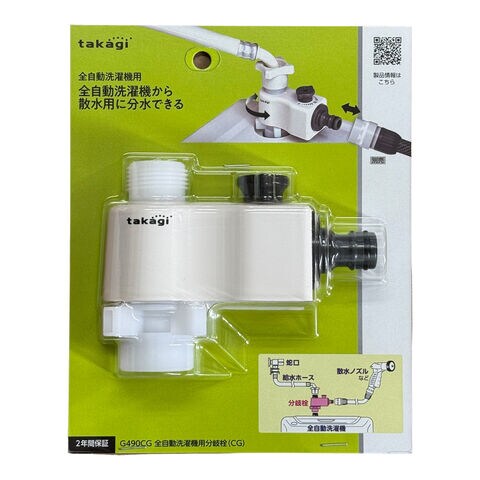 タカギ 全自動洗濯機用分岐栓 G490CG | ホース 接続 パーツ 洗濯機 分岐 ワンタッチ ニップル 通水 止水 ロック付き 便利 マンション アパート ベランダ掃除 分岐栓 全自動洗濯機用 接続パーツ ジョイント 部品