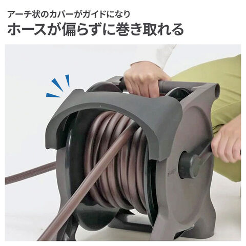 アーチ状のホースガイドで、ホースが偏らずに巻き取れます。