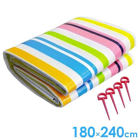 レジャーシート レジャーマット 3畳 180×240cm ストライプ S-30 | 敷物 風止め付き 5~6人用 厚手 防水 大きい 大判 クッションレジャーシート バッグ付き