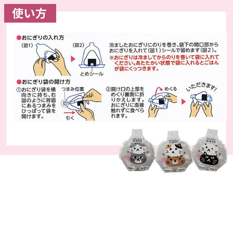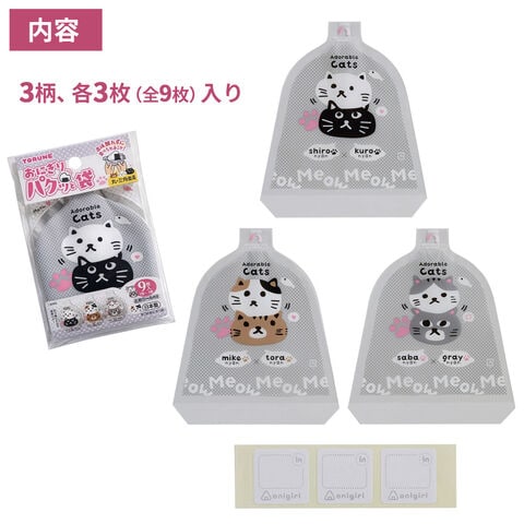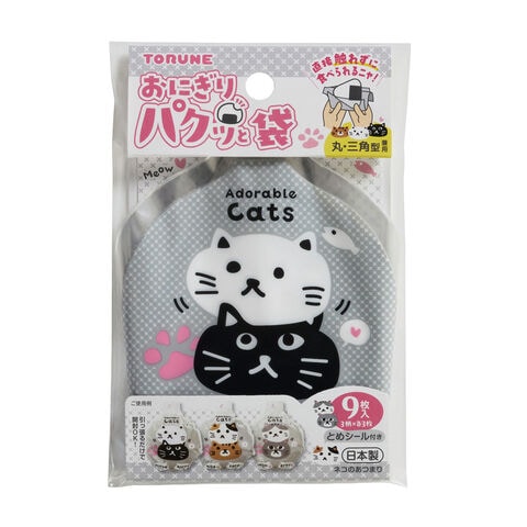 おにぎりラップ おにぎりパクッと袋 ネコのあつまり 9枚入 | おにぎりラップ おにぎりシート フィルム お握り オニギリ 包む 弁当 おべんとう とめシール付き ねこ 猫 日本製