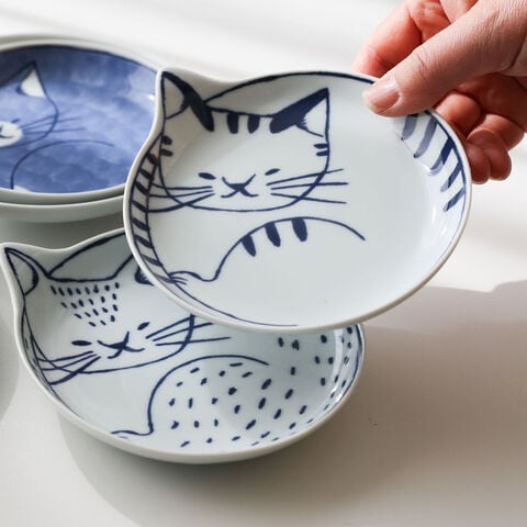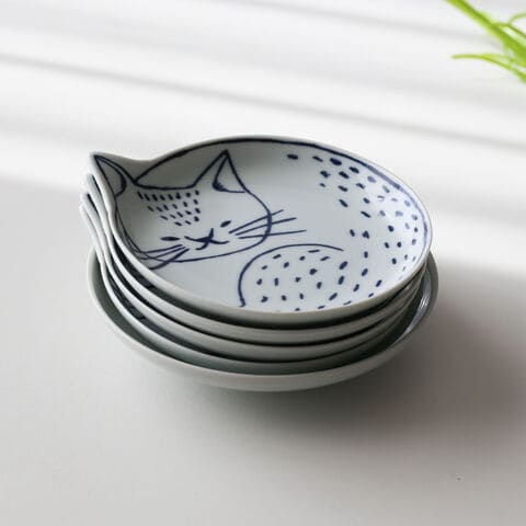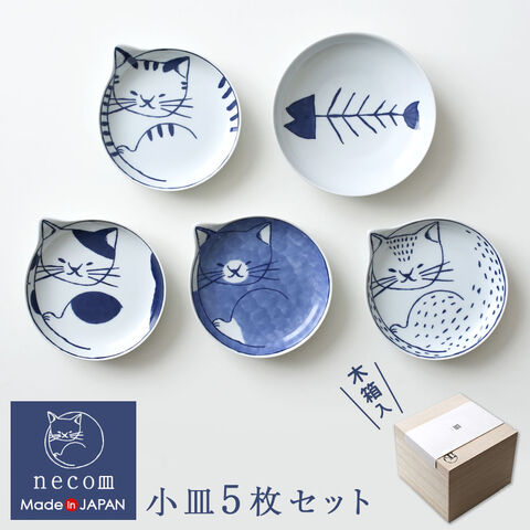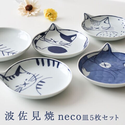 波佐見焼 猫皿 neco皿 5枚セット 小皿 | ネコ ねこ 食器 和食器 かわいい 取り皿 小皿 天塩皿 おしゃれ お皿 プレゼント 贈答 磁器 ギフト 誕生日 猫好き 女性 男性 食器セット 食器ギフト 結婚祝い