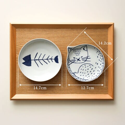 スペック商品サイズ(約):猫/幅14.2×奥行12.7×高さ2.1cm サカナノホネ/直径14.7cm×高さ3cm