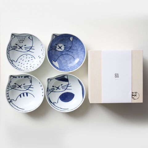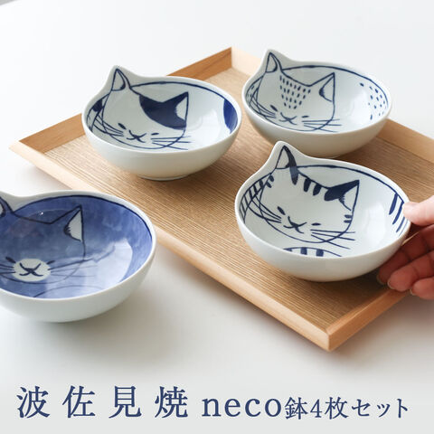 波佐見焼 neco鉢 猫鉢 4枚セット 小皿 猫皿 neco皿 | ネコ ねこ 食器 和食器 かわいい 取り皿 小皿 天塩皿 おしゃれ お皿 プレゼント 贈答 磁器 ギフト 誕生日 猫好き 女性 男性 食器セット 食器ギフト 結婚祝い