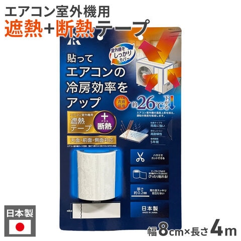 エアコン室外機用 遮熱テープ 80mm×4m巻 SN-W05 | 室外機カバー 遮熱シート テープタイプ 日本製 節電対策 エアコン 67×24×53cmまで 日除け 保護 遮熱 断熱 室外機 負担軽減 高耐候性 冷房効率 アップ