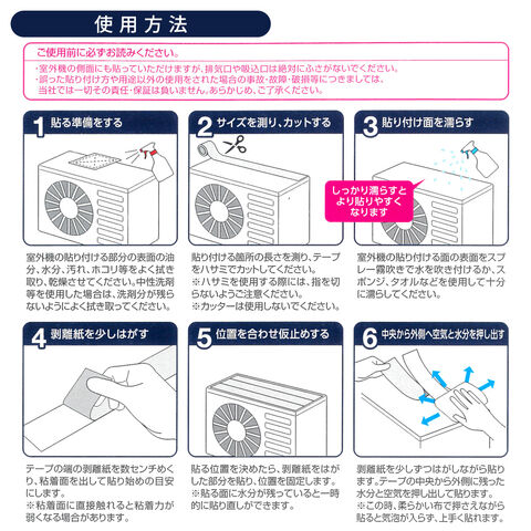 取り付け簡単テープタイプハサミでカットできるテープタイプなので、室外機のサイズにあわせてぴったり貼ることができます。