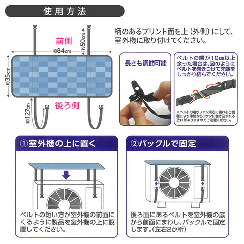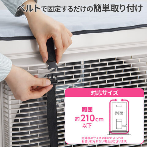 クール100 エアコン室外機カバー 84×35cm HN-096 | ベルト式 エアコン室外機用 UVカット率100% 遮光率100% カバー 遮熱 日傘生地 紫外線カット 反射 日除け 保護 劣化防止 省エネ 節電 周囲210cm以下