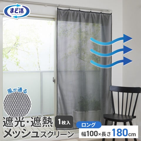 窓 遮熱 窓遮光・遮熱スクリーン メッシュ ロング(100×180cm) 1枚入 HN-552 | 夏用 断熱 カーテン 暑さ 対策 省エネ 遮熱シート 断熱シート 遮光 目かくし 紫外線カット UVカット 日よけ メッシュカーテン 節電 エコ 掃出し窓 夏用