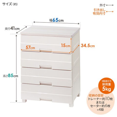 収納の目安:トレーナー約10枚またはセーター約6枚×4段