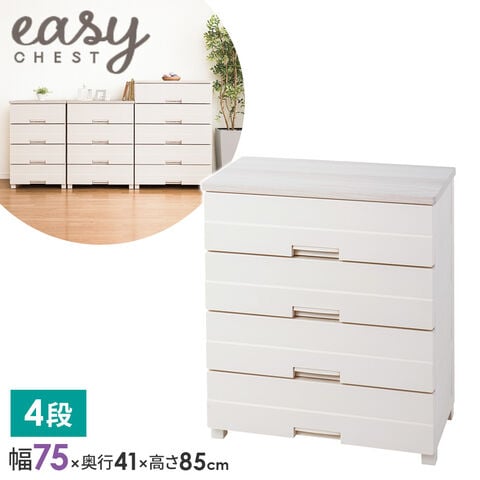 衣類ケース チェストイージー 幅75cm 4段 7504 | 洋服 タンス プラスチック 衣類収納 引き出し 組立不要 脚付き 天馬 チェスト 木目 天板 収納ケース 衣装ケース インテリア おしゃれ ベージュ 一人暮らし 寝室 リビング