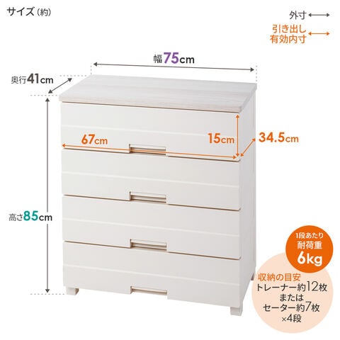 収納の目安:トレーナー約12枚またはセーター約7枚×4段