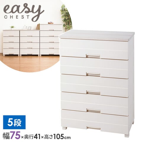 衣類ケース チェストイージー 幅75cm 5段 7505 | 洋服 タンス プラスチック 衣類収納 引き出し 組立不要 脚付き 天馬 チェスト 木目 天板 収納ケース 衣装ケース インテリア おしゃれ ベージュ 一人暮らし 寝室 リビング