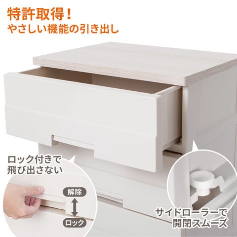 ご注意この製品の主用途は衣類収納用チェストです。書籍や紙類などの、過度に重いものを収納しないでください。