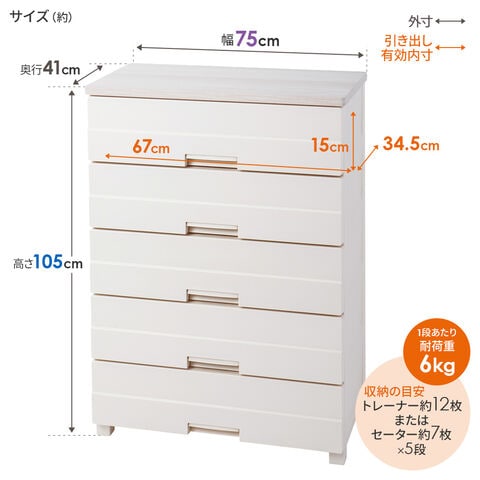 収納の目安:トレーナー約12枚またはセーター約7枚×4段