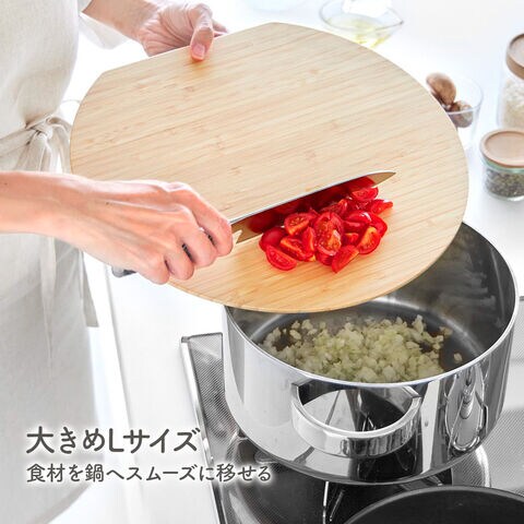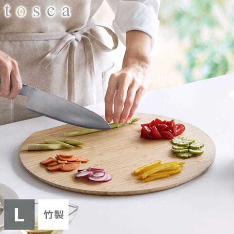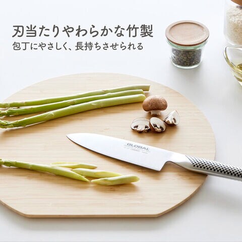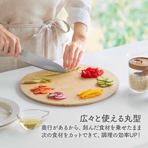 いろいろな食材を一度に切れる、丸形の竹製まな板。【Lサイズ】