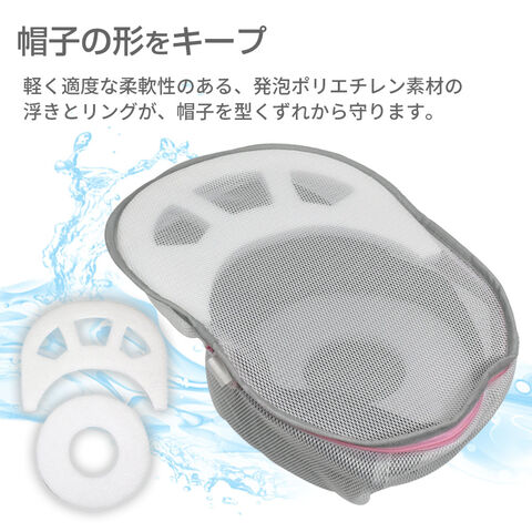 野球帽やゴルフキャップなどのつば付きの帽子を、洗濯機で洗える洗濯ネット。