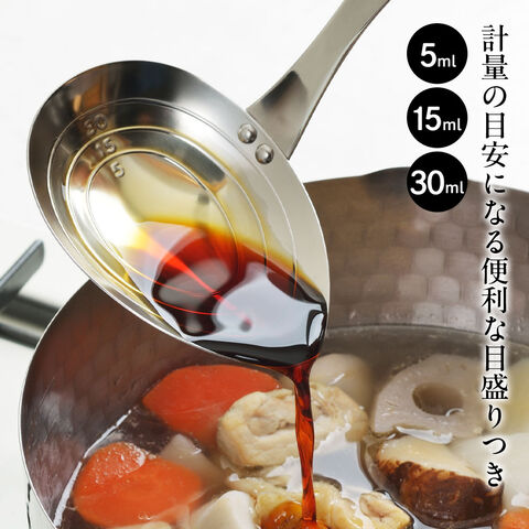 料理のいろは 目盛付き横口おたま | レードル スープ お玉 横口お玉 計量スプーン 日本製 ステンレス 燕三条 大さじ 小さじ 右利き 目盛り付き 下ごしらえ