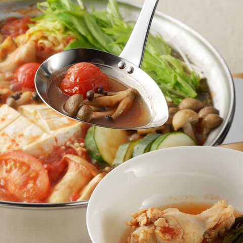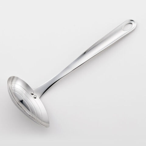 繊細なお料理でもこぼさずに測りながら注げる、横口のお玉。