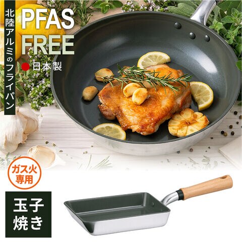 内面セラミック加工の日本製フライパン。PFAS(フッ素樹脂加工)不使用で安心してお使いいただけます。