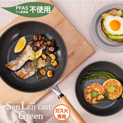 フライパン 日本製 フッ素不使用 ガス火専用 セラミック 玉子焼き器 センレンキャストグリーン | PFASフリー 国産 北陸アルミ セラミック ふっ素不使用 おしゃれ 厚底 焦げ付きにくい こびりつきにくい 底厚 キッチン用品 調理用品 料理 炒め物 焼き物 卵焼き