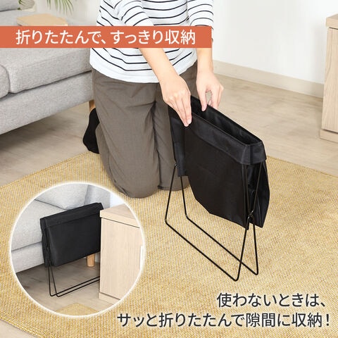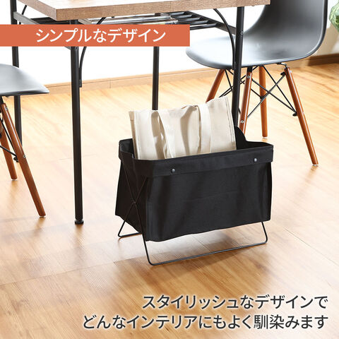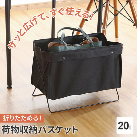 折りたためる 荷物収納バスケット ブラック | かご バスケット ボックス 荷物入れ 荷物置き 手荷物 荷物 バッグ かばん 置き 収納 折り畳み 布