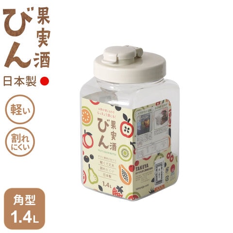 梅酒瓶 プラスチック 角型 1.4L スリム グレージュ | 梅酒瓶 保存容器 びん S型 梅酒 ビン シロップ漬け 日本製 フルーツシロップ 果物 梅 密封 自家製 手作り プラスチック 軽量 タケヤ ドアポケット サングリア 約1リットル