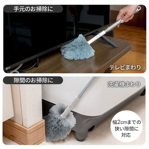 高いところや狭いところにエアコンの上やカーテンレール・テレビの裏・洗濯機周りなどの手の届きにくい場所のお掃除に。
