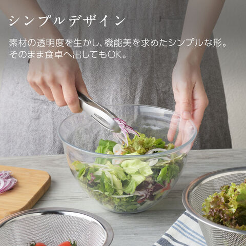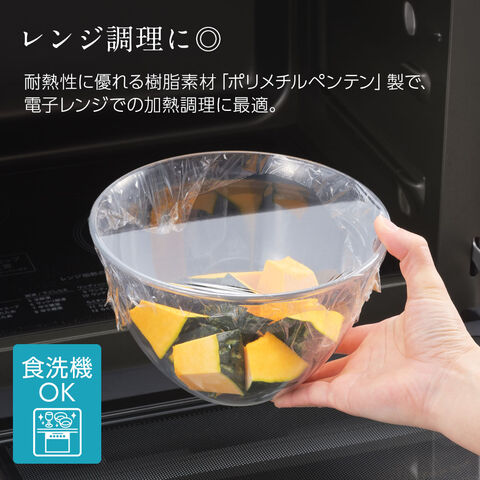 ガラスのように透明度が高い、電子レンジ対応の調理用ボウル。