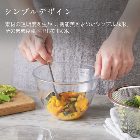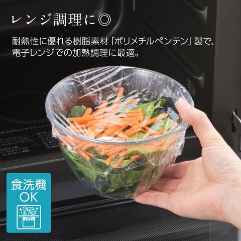 ガラスのように透明度が高い、電子レンジ対応の調理用ボウル。
