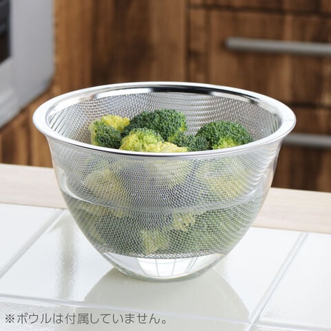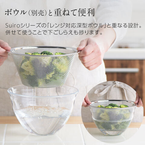suiroシリーズの深型ボウルにピッタリ!変形しにくい網を使用した、ステンレスザル。