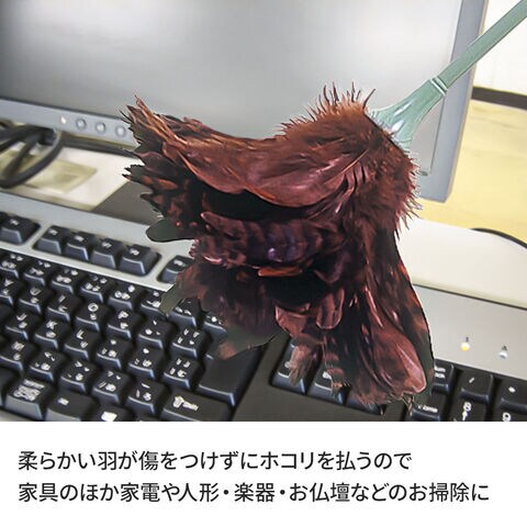 やさしくホコリを払うやわらかく、ボリュームのある羽が傷をつけずに軽い力でホコリを払い取ります。