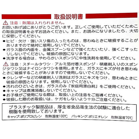 ご注意熱湯は入れられません。