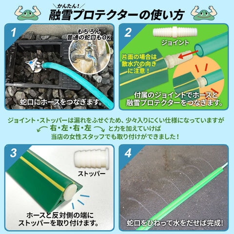 融雪ホース 大研の融雪プロテクター 3m 両面穴 グリーン KUP-03W | 家庭用 水道ホース連結 融雪 散水 消雪ホース 雪対策 路面 雪 溶かす 水 除雪 豪雪 暑さ対策 夏 打ち水のレビュー
