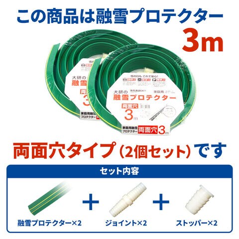 融雪ホース 大研の融雪プロテクター 3m 両面穴 グリーン 2個セット KUP-03W | 家庭用 水道ホース連結 融雪 散水 消雪ホース 雪対策 路面 雪 溶かす 水 除雪 豪雪 暑さ対策 夏 打ち水
