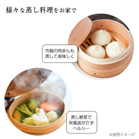 肉まん、焼売、小籠包などの中華点心はもちろん、蒸し野菜や蒸し鶏、蒸しパンなど様々な蒸し調理にお使いください。