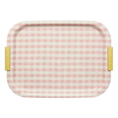 トレイ NSトレー ミルキーチェック 取っ手付 L 角型 ピンク | テーブルトレイ チェック柄 取手付き すべり止め加工