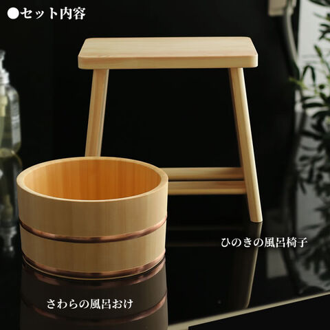 セット内容ひのきの風呂椅子 大 + さわらの湯おけ