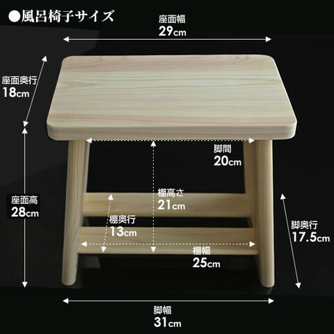 スペック外寸サイズ(約):風呂椅子/幅31×奥行18×高さ28cm 湯桶/直径22×高さ11.5cm