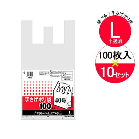 レジ袋 手さげポリ袋L 40号 半透明 100枚入×10袋セット SB-40 | ポリ袋 ごみ袋 白 半透明 持ち手つき L スーパー袋 手提げ付き