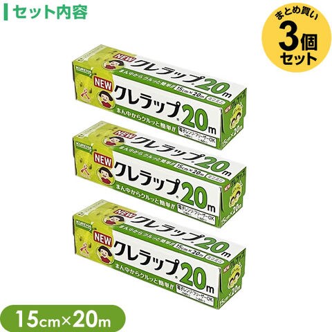 ラップ NEW クレラップ ミニミニ 15cm×20m 3個セット | ニュークレラップ キッチンラップ 食品保存 食品ラップ 日本製 フードラップ 食品用 ラップフィルム ラップカッター クレハカット