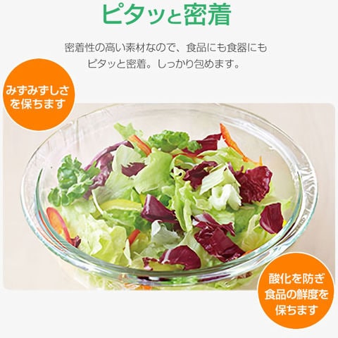 密着性の高い素材なので、食品にも食器にもピタッと密着し、しっかり包めます。