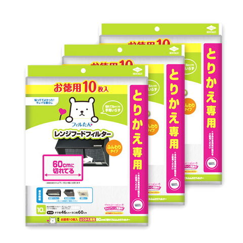 レンジフードフィルター お徳用10枚入とりかえ専用60cmに切れてるふんわりフィルター ×3個セット | 徳用 換気扇 深型 整流板 浅型 60cm レンジフード 油汚れ ふんわりタイプ 切って使える
