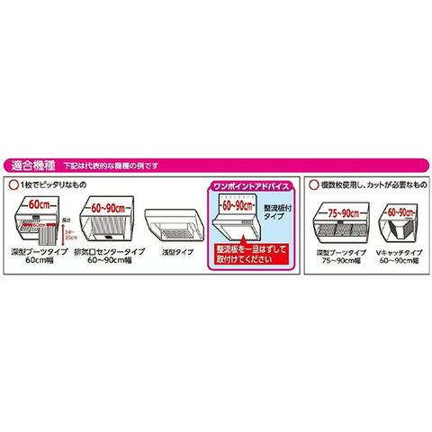 1枚で金属フィルター全面をカバーできます。(深型ブーツタイプ60cm幅の場合)