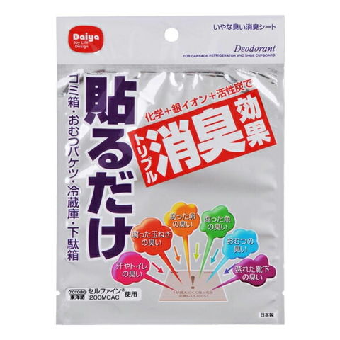 貼るだけで、ごみ箱・オムツバケツ・冷蔵庫・下駄箱等の臭いの元を吸着。スピーディーに消臭します。