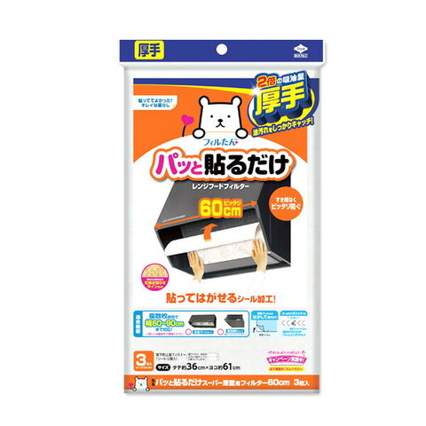 レンジフードフィルター 厚手 パッと貼るだけ スーパー深型用フィルター 60cm 3枚入 | 換気扇 貼ってはがせる 交換お知らせサイン 60cm 深型 整流板 レンジフード 油汚れ 厚手タイプ 汚れ防止