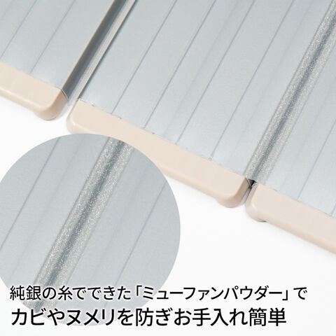純銀のチカラで細菌の繁殖を抑え、イヤなヌメリが付きにくい折り畳みタイプの風呂ふた。