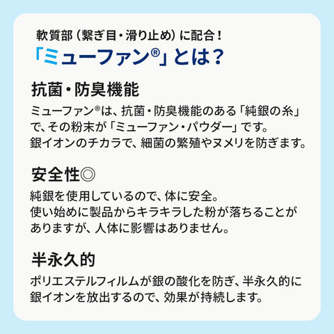 カビやヌメリの最も気になる軟質部に、抗菌・防臭機能をもつミューファンパウダーを配合。
