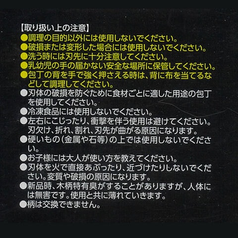 材質:刃体/モリブデンバナジウムステンレス刃物鋼 口金/ナイロン 柄/積層強化木