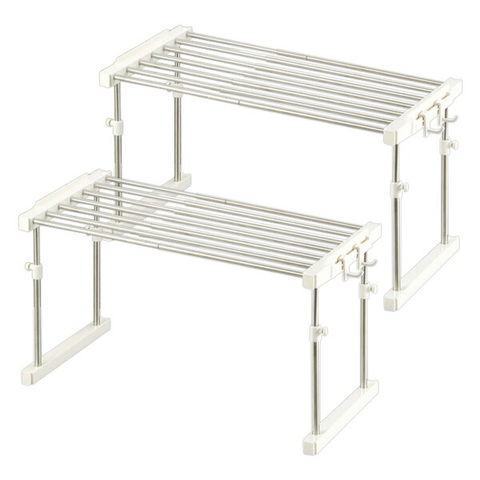 スライド棚 セキュア ステンレス製パイプ棚 2個セット H-6690 | 伸縮 パイプ棚 キッチン シンクまわり シンク下 収納棚 連結 積み重ね