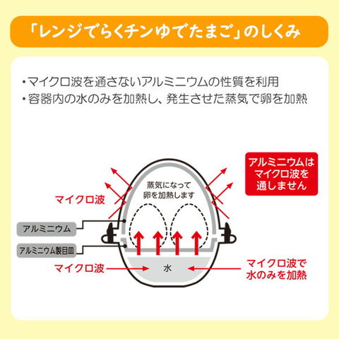 電子レンジのマイクロ波を通さないアルミニウムが、卵へのマイクロ波をシャットアウト。